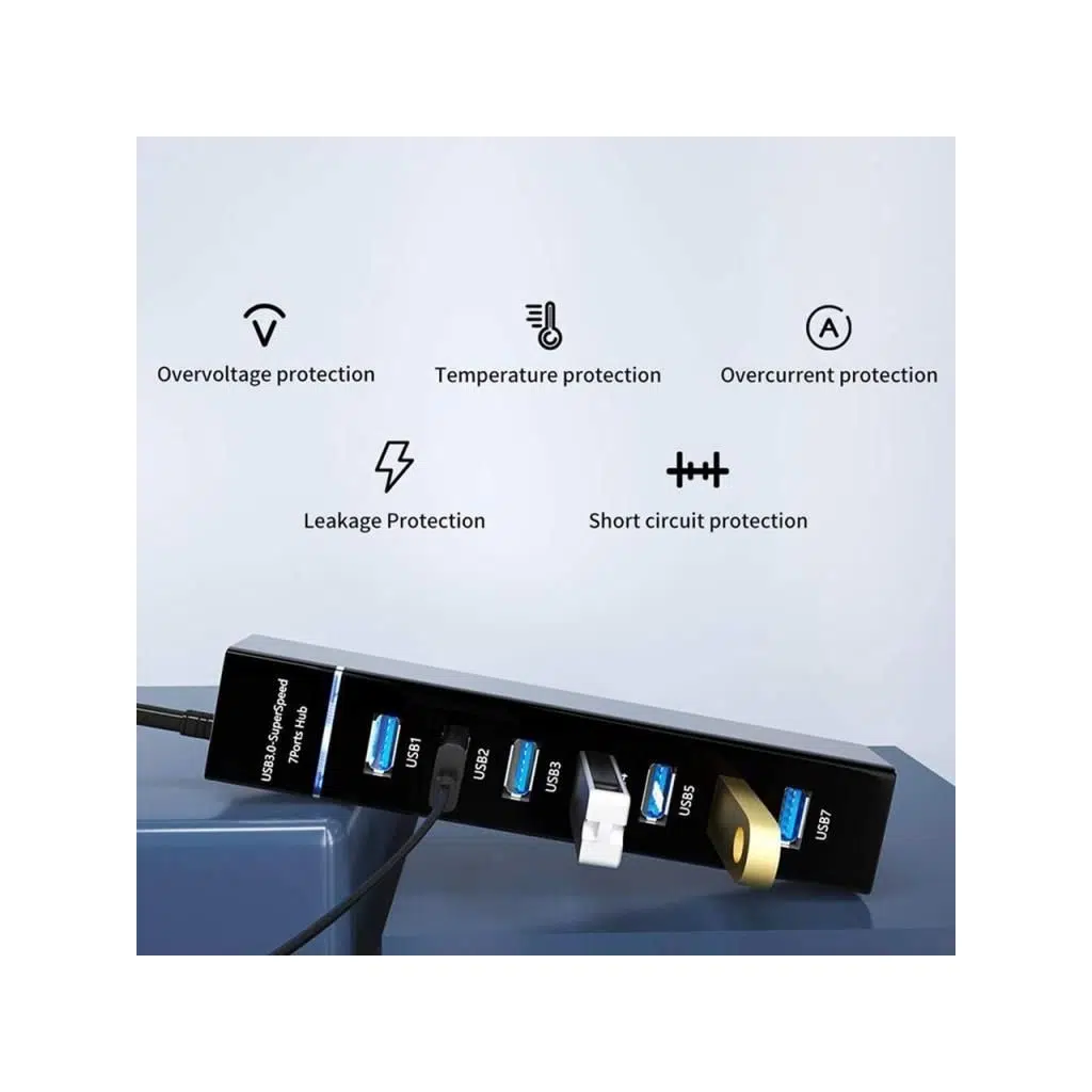 7 farklı cihazı, USB 3.0 hızında tek noktadan aynı anda bağlamak için kullanılır. Yeterli sayıda USB çıkışlı bir cihazınız yoksa bu ürün ile USB çıkışınızı çoklayabilirsiniz.Yeni nesil akıllı telefonlar, usb bellekler ve harici disklerde bulunan USB 3.0 bağlantısı ile hem daha hızlı data aktarımı hem de şarj imkanı bulabilirsiniz.